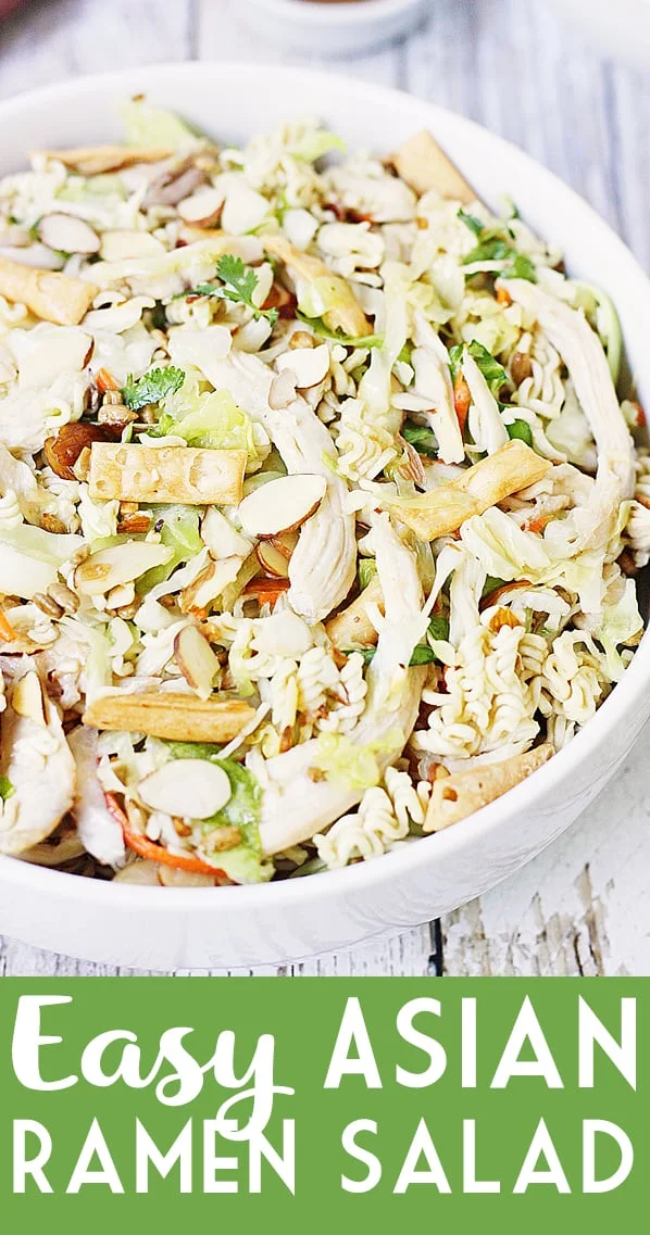 While you can make this easy Asian ramen salad year round, it is heavenly during the hot summer months. One recipe makes a huge bowl, so it's perfect for potlucks and backyard barbecues.