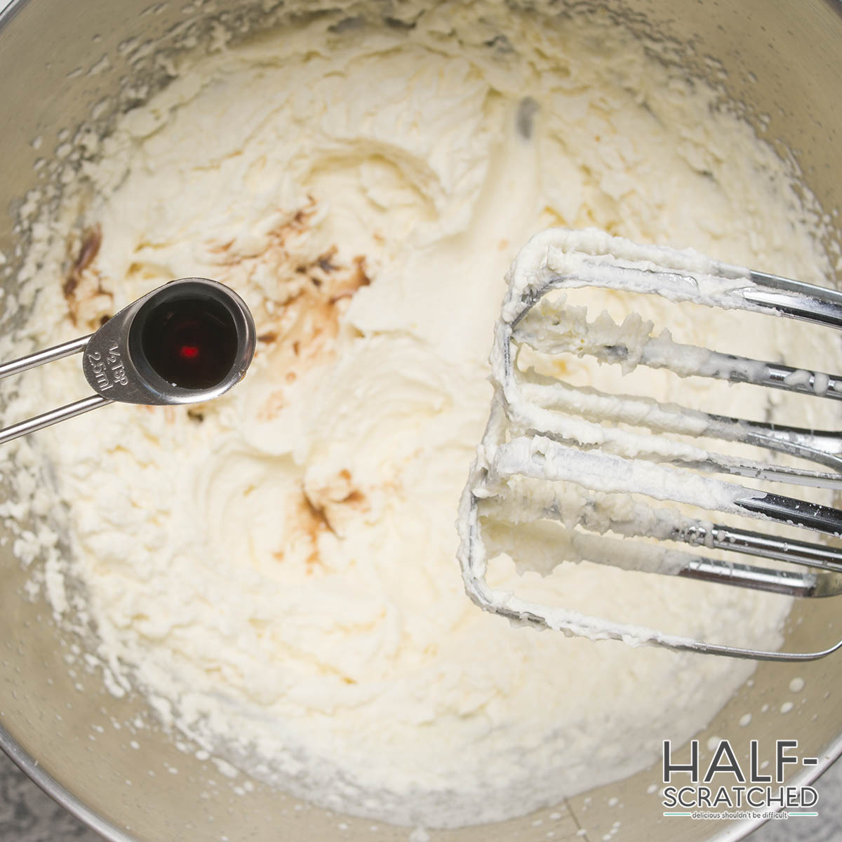 - Add the sugar and vanilla: Gradually add the granulated sugar, vanilla extract, and salt to the whipped cream, continuing to beat until the mixture is smooth and creamy.